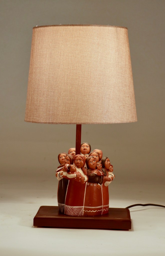 Small crowd of mothers expressed in clay. Sculpture from Mexico.