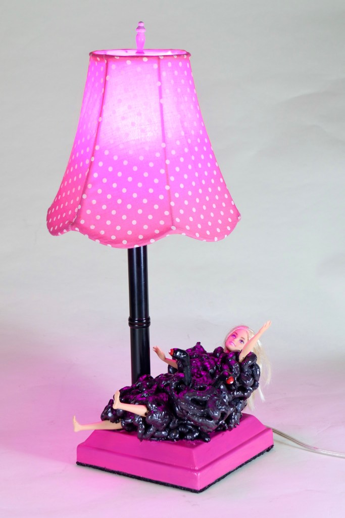 Shown with pink bulb (change it if you wish) and shade to match.