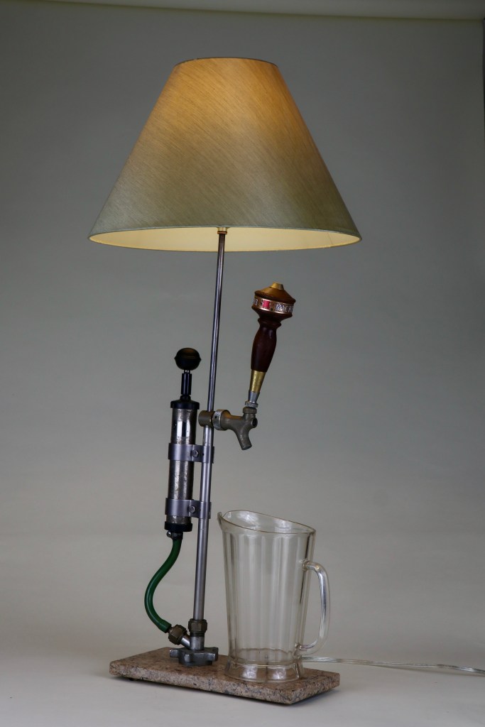 Well-used tap on marble base with genuine cheap plastic bar pitcher.