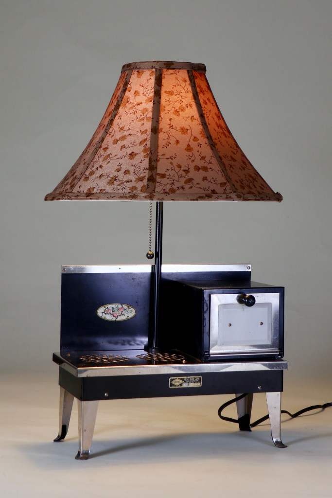 When it worked, this 1930’s stove boasted two burners and an oven. 110 volts for the kiddies. I guess safety standards were lower then.