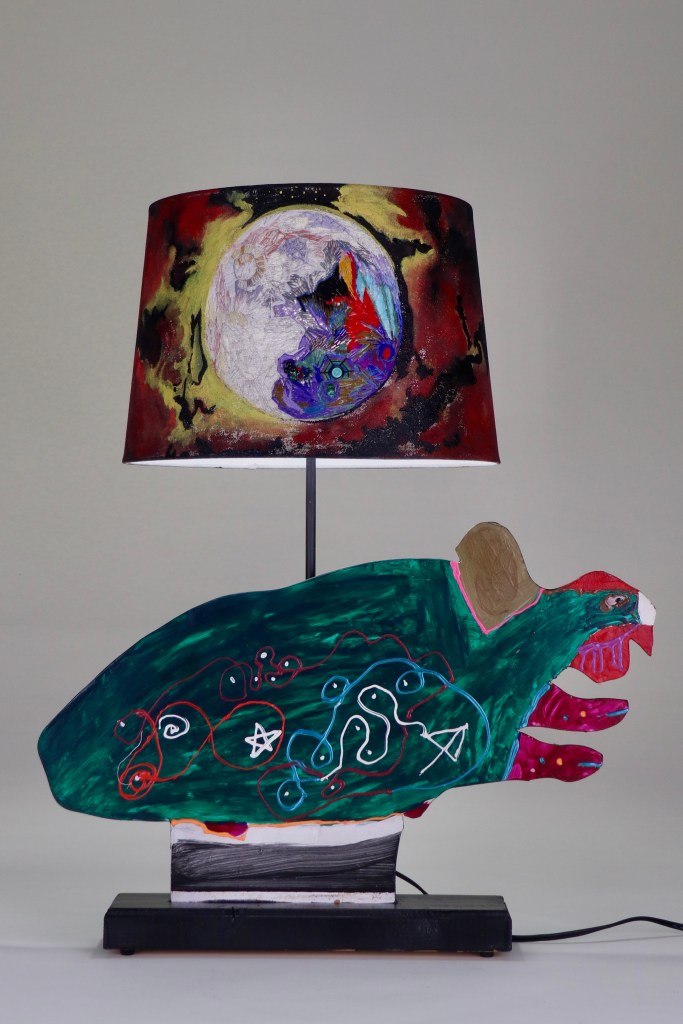 Not for the faint of heart. Painted on hardboard, this folk art could also have been a children’s art project.