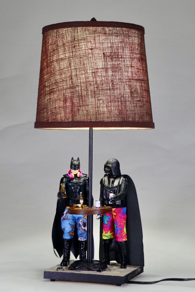 On wood base, faux sand. 26 inches tall, switch on socket.