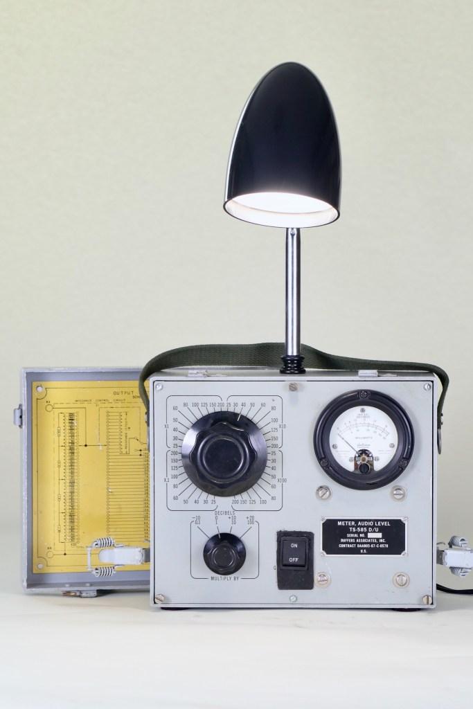 Dual switch – one on socket and one artist-installed (that’s me) switch on meter face. The cover (included with lamp) clamps on.