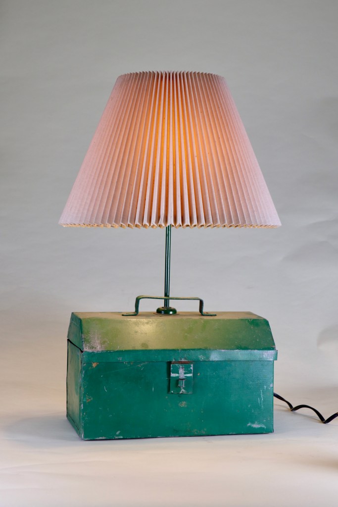 Maybe it was a toolbox, maybe a lunchbox. Appropriately gnarly from use. Can be (carefully) opened for storage and an antique lock would finish it off.
