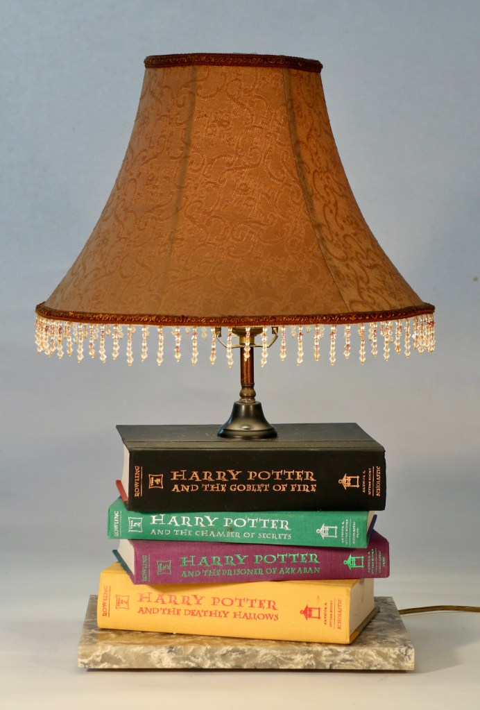 Get your quidditch on! Four of the seven volumes of this popular series form a base for this lamp.