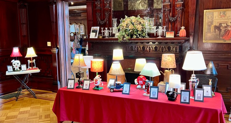 Lamps are on display in the Box Office of the State Theatre, 107 W. State Street in Ithaca.