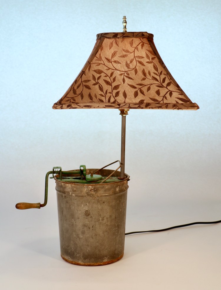 A 1920’s vintage antique metal hand churn that was once used to make ice cream.