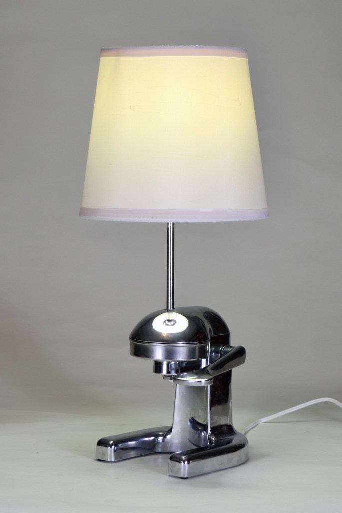 Chrome manual juice squeezer with a sculptural look.