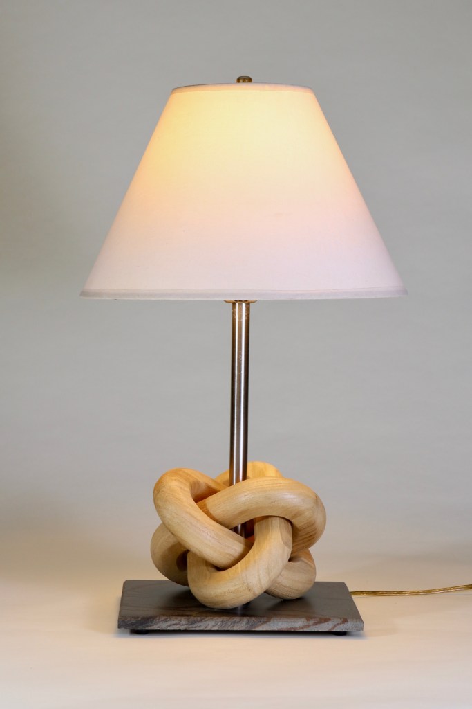 Wood carved interlocking links make a sculptural statement.