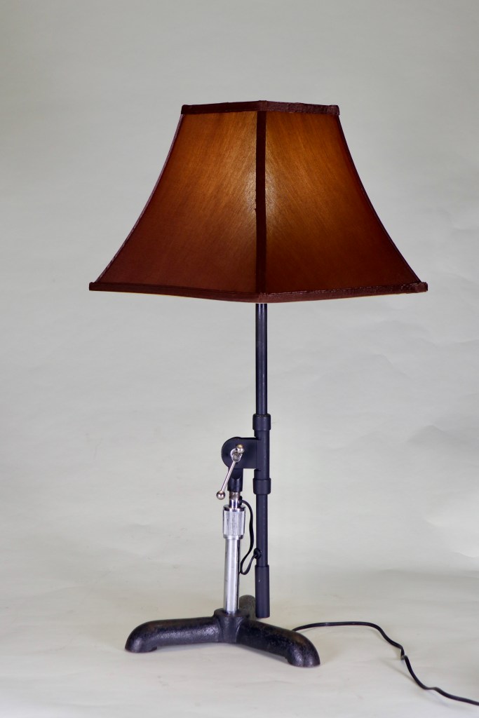 Tabletop mic stand (from the venerable State Theatre of Ithaca) converted to a lamp.
