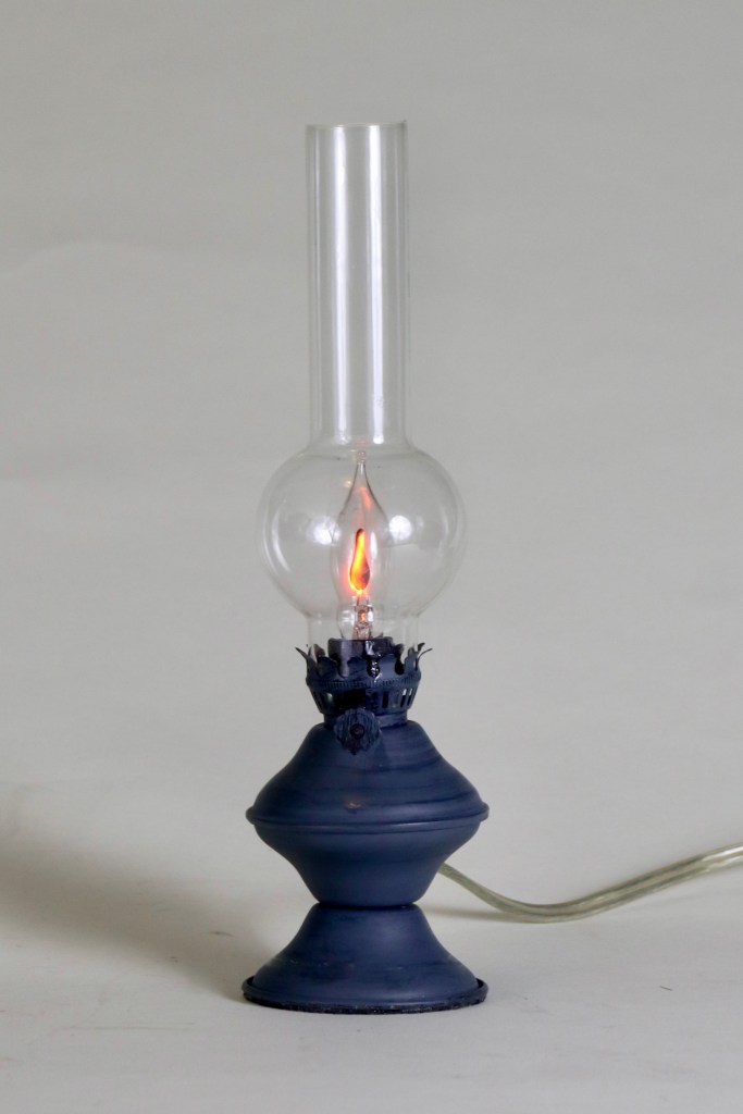 Diminutive lamp has option for flicker flame candelabra bulb (shown). Regular bulb included.