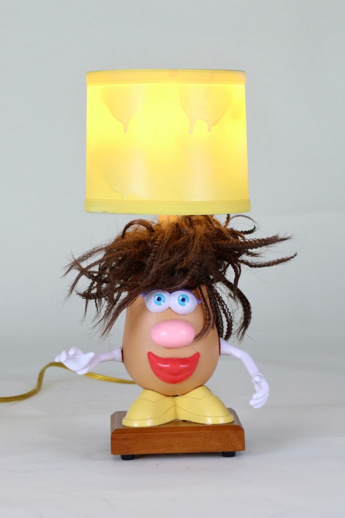 Mrs. Potato Head Lamp Dare we say she is having a bad hair day? Candelabra bulb, 15 inches tall, line switch. $55 — SOLD-STI