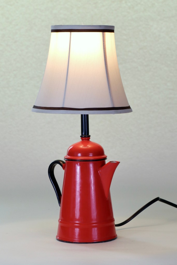 Red Coffeepot Lamp Elegant ceramic coated steel pot makes a great little accent lamp. 17 inches tall, switch on socket. $65 SOLD-STI