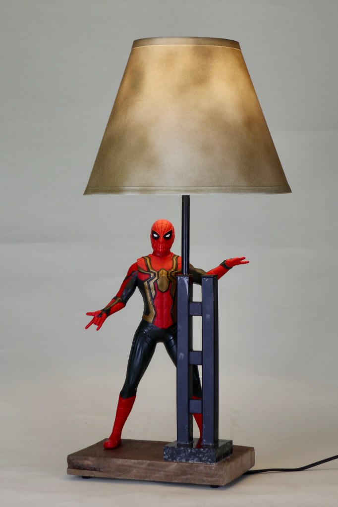 On marble base, 25 inches tall, switch on socket.