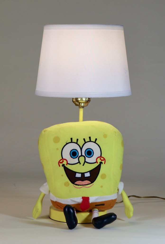 Sits on a yellow base. 20 inches tall, switch on socket.