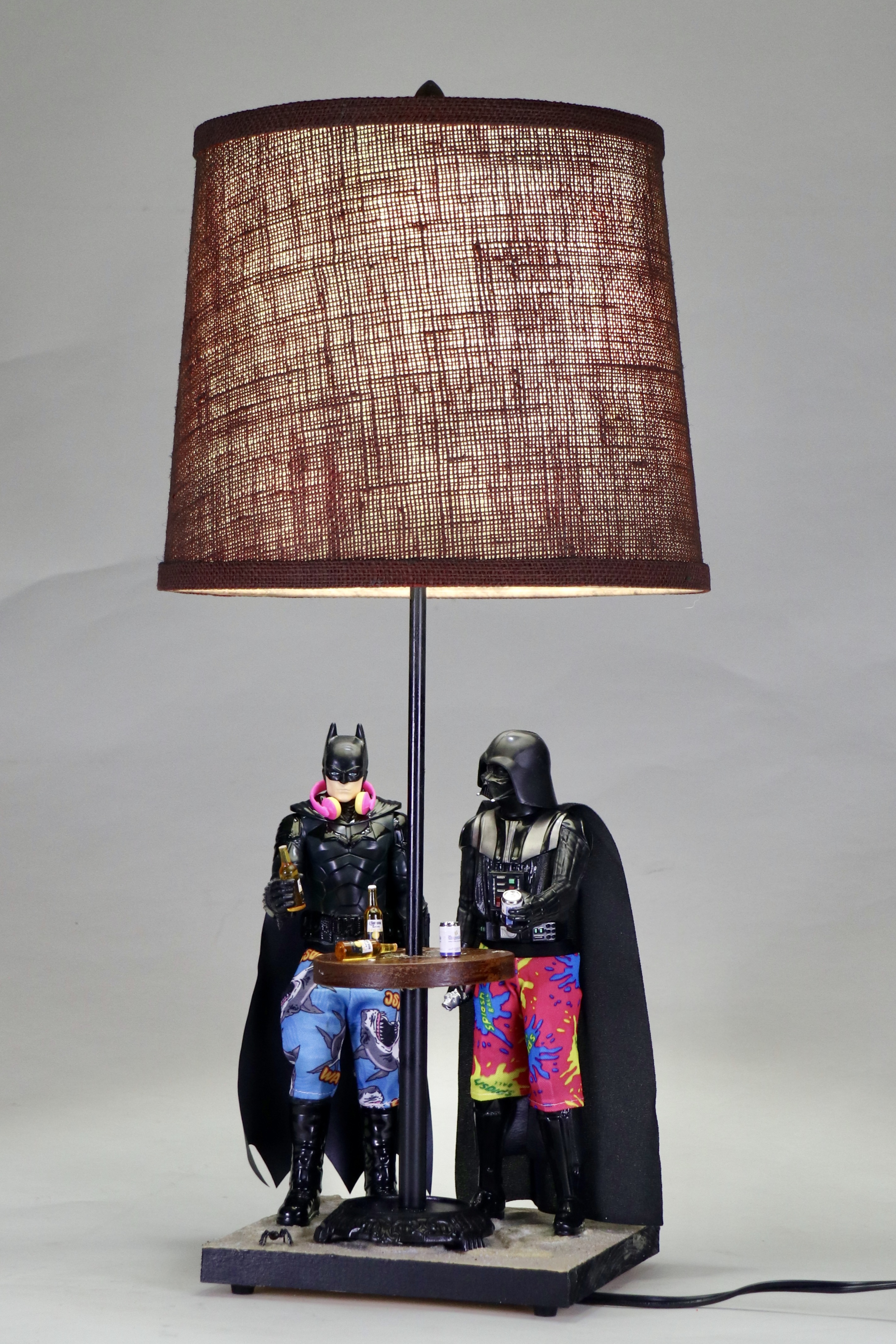 What the numbers don’t reflect is the fun involved in the process. Nobody tells me what lamp to make next (except, on occasion, my spouse, or when there is a lamp commission), so the array ranges from the elegant (Cigar Mold Lamp) to the silly (Batman and Darth Vader at the Baja Beach Bar Lamp).