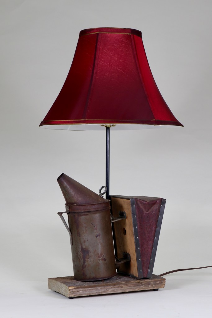 Circa 1910 tool used to calm bees for honey collection. Part of the “Bee Ware” line of beekeeping products.